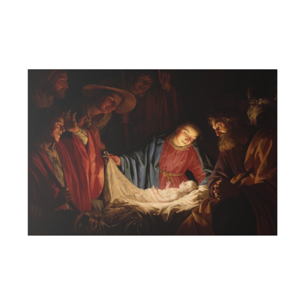 Adoration of the Shepherds Painting Reproduction, Baby Jesus in a Manger Print, Classic Gerard van Honthorst Wall Art Decor Christian canvasPrice range: $78.28 through $256.04